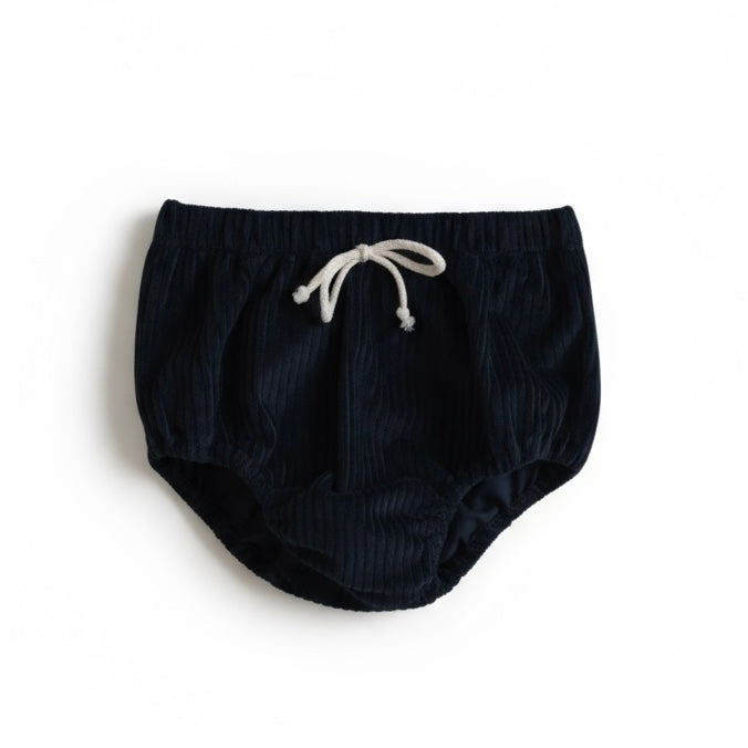 "Cléo, c'est une mini version du pantalon Taylor, avec tout autant de style: en velours côtelé, avec un cordon noué pour la touche cool. À porter avec des collants l'hiver, ou jambes nues dès que le soleil revient!