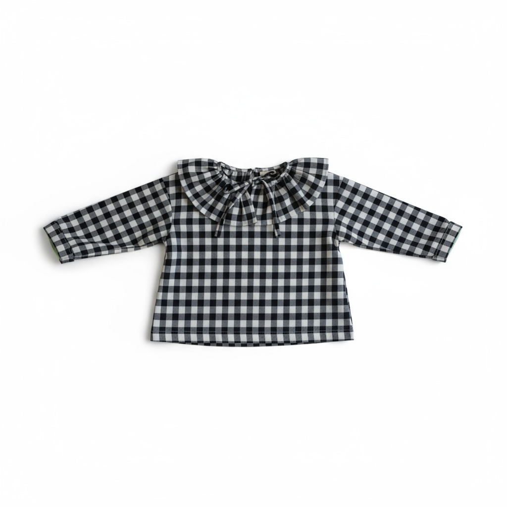 Avec ses fines rayures jaune poussin et son grand col volanté, "Nour" donne une touche rétro-chic à toutes les aventures du quotidien. Un basique pas si basique, à porter tel quel ou à assortir pour créer des looks stylés, à l'école comme à la maison.