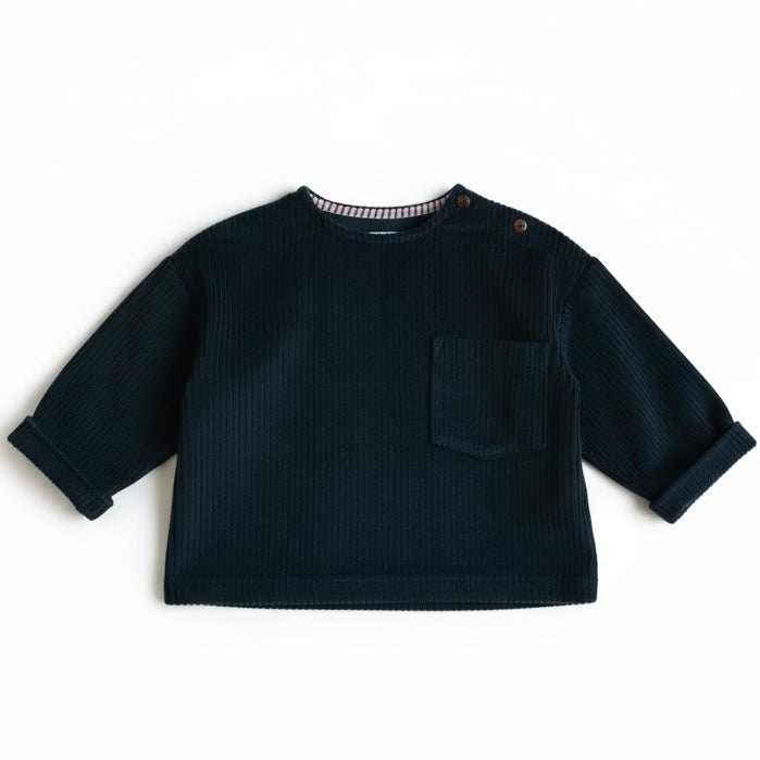"Elie" est un modèle mixte à l'allure cool, avec sa coupe ample et un tissu en velours côtelé. On aime la poche poitrine et l'ouverture à pressions sur l'épaule. Un basique de caractère, à porter tous les jours sans jamais se lasser.